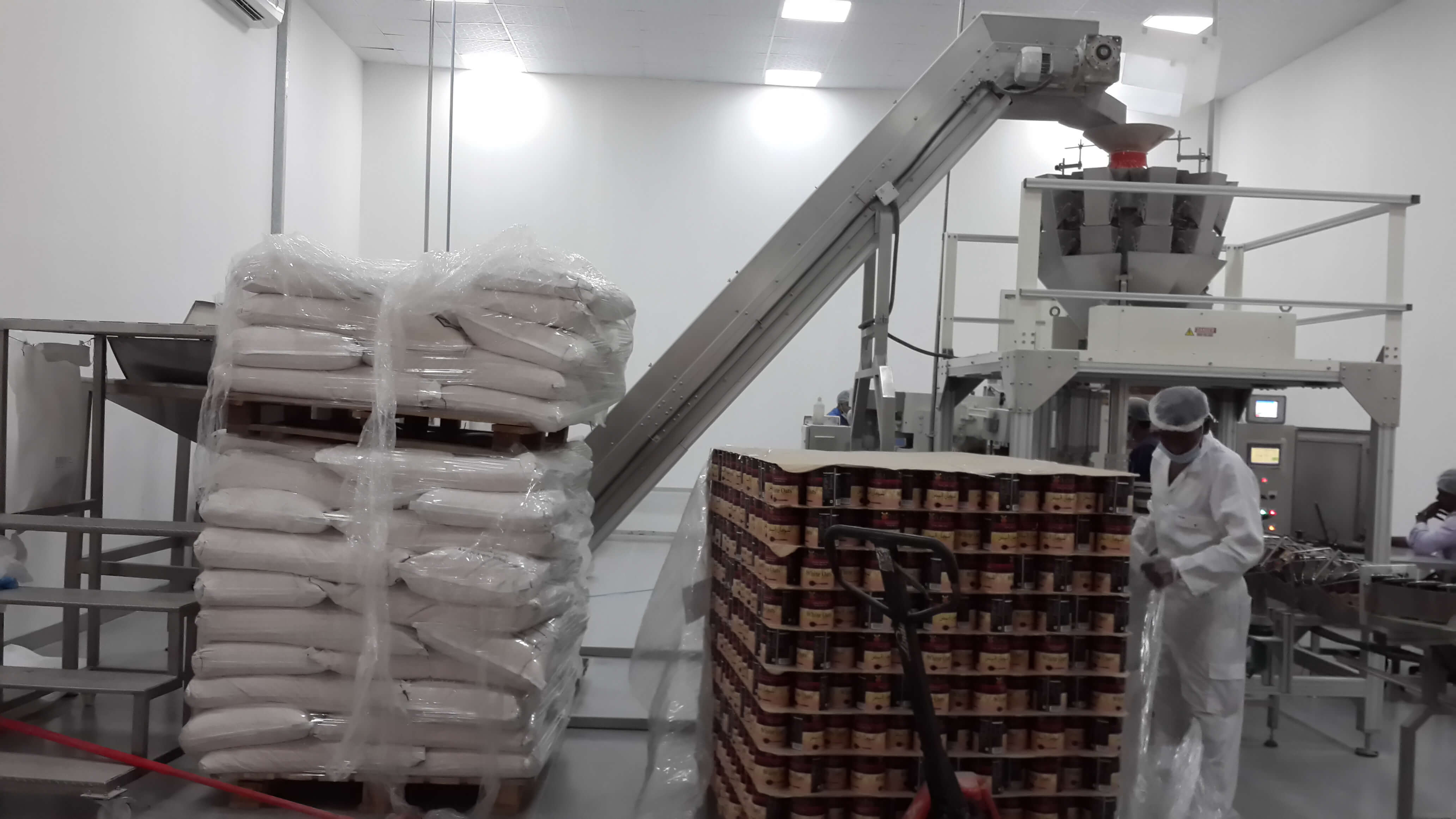 Oats weighing line with Tin Filling and Seaming system with YAMATO Multihead Weigher controls: